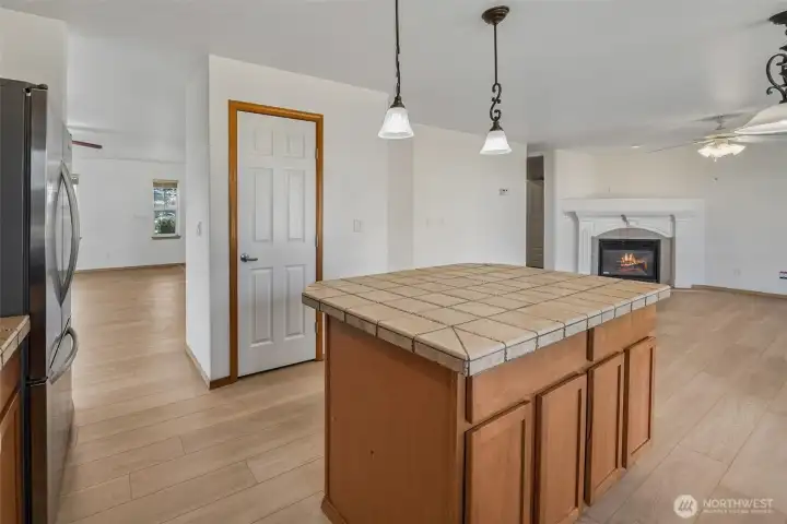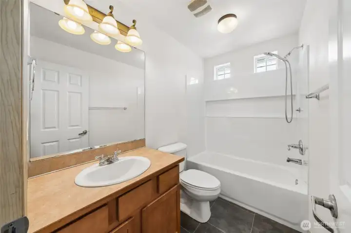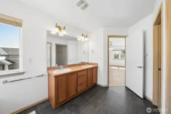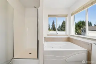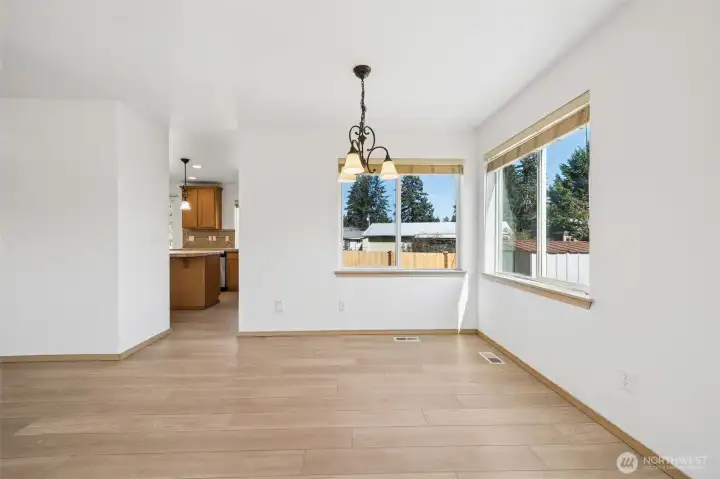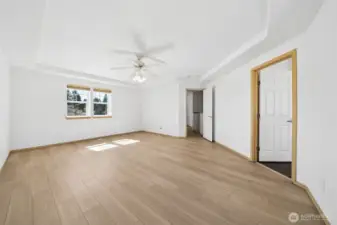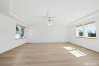 Remarkable home tucked in a quiet cul-de-sac in the desirable Rainier Place Estates neighborhood! This beautifully updated home shines with NEW interior paint, NEW LVP flooring, and NEW carpet on the stairs. Inviting entry leads to the formal living and dining rooms—perfect for entertaining. The spacious kitchen features ceramic tile countertops with full-height tile backsplash, a walk-in pantry, stainless steel appliances, and a NEW range. Cozy family room with gas fireplace and mantle creates the perfect gathering space, plus a convenient main-floor office for work or study. Upstairs, the expansive primary suite offers a walk-in closet and luxurious 5-piece bath with NEW vinyl flooring and a relaxing jacuzzi tub. Three additional guest bedrooms include a Jr. primary suite with its own full bath and walk-in closet, along with a bonus room for added flexibility. Guest bathroom also updated with NEW vinyl flooring and a NEW fiberglass tub/shower. Don't miss the views of Mt. Rainier from the primary bedroom and front guest bedroom!!! Enjoy the outdoors with NEW backyard fencing and grass, plus a 3-car garage complete with custom flooring and built-in cabinets for extra storage. A perfect blend of space, comfort, and thoughtful updates—this home is move-in ready and truly a must-see!