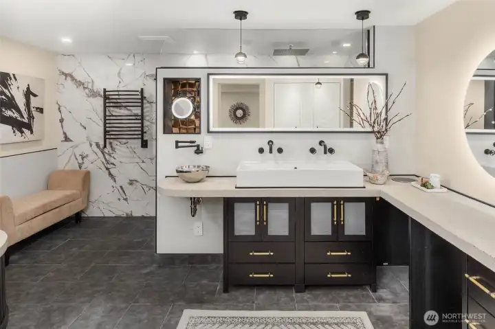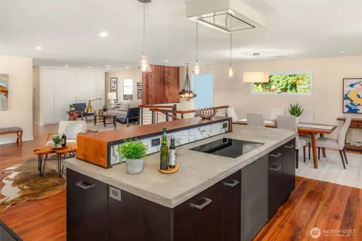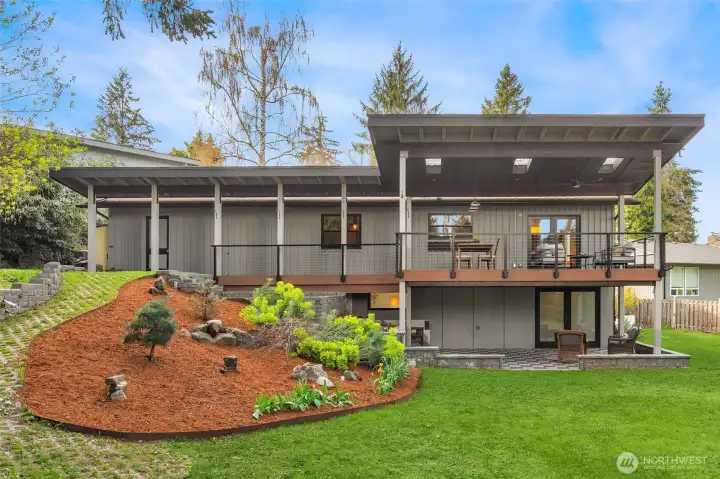 A masterclass in modern luxury, a fully reimagined residence taken down to the studs & rebuilt to today’s highest standards. Originally built in 1963, every detail thoughtfully curated to live like new while maintaining warmth & character. A no-stair entry, expansive front deck, clean architectural lines, and refined finishes create a welcoming first impression. Inside, natural light fills the open-concept layout, anchored by a gas fireplace. The chef’s kitchen features custom concrete countertops, professional-grade ventilation, and a statement island w/ abundant storage. The main level includes a private office with built-ins, a guest retreat, an accessible bath, custom storage, layered lighting, voltaic film windows, & intentional sightlines. A sculptural spiral staircase leads to the private lower level, featuring a luxurious primary suite w/ gas fireplace, and spa-inspired bath with heated floors, soaking tub, dual vanities, and multi-head shower. Remodeled extensively to an exceptional level of infrastructure and efficiency. All new electrical, plumbing, gas lines, insulation, windows, doors & more. A high-efficiency mini-split system, on-demand recirculating hot water, and advanced ventilation & circulation systems. Outdoors, enjoy tiered landscaping, hardscaping, private patio, & firepit area. Low-maintenance plantings provide year-round greenery with minimal upkeep. A rare combination of thoughtful design, modern convenience, and elevated luxury. Truly exceptional!