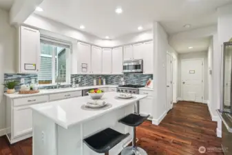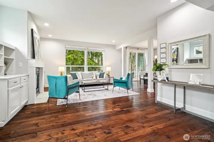 Your own private sanctuary in North Rose Hill. Backing to a protected nature preserve, this refined 2-story home offers rare privacy with serene views. Sunlight pours into the open great room through expansive windows, creating a warm, inviting space that seamlessly connects to a newer deckâperfect for relaxing or entertaining in a natural setting. Thoughtfully updated throughout, the home features a remodeled kitchen with quartz countertops, SS appliances, custom cabinetry, along with beautifully renovated baths, including a primary suite finished with elegant Italian tile. Hardwood floors, air conditioning, newer furnace, and newer roof provide true move-in-ready comfort. Minutes to Downtown Kirkland, Totem Lake, Lake Washington, and major tech campuses including Microsoft, Google, and Meta, with easy access to I-405 and top-rated Lake Washington schools. A rare combination of privacy, location, and everyday livability.