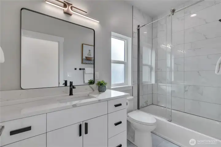 Stunning 2026 new construction in Upper Rainier Beach offering just shy of 2,500 sq ft and approximately 800 sq ft rooftop deck with sweeping Lake Washington views. This 5 bedroom, 3 bathroom home includes a dedicated office, two bonus rooms, and bright open-concept living designed for today’s lifestyle. The designer kitchen features quartz countertops, stainless steel appliances, and a premium induction oven, complemented by modern finishes throughout. Enjoy year-round comfort with an energy-efficient mini-split heating & A/C system, along with custom California Closets for added functionality and style. A rare blend of space, flexibility, and view-driven living — must see!