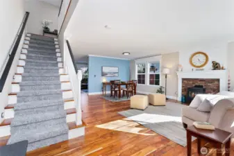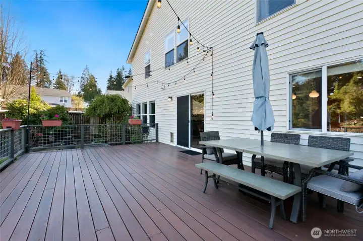 Welcome to this luminous, turn-key 4-bedroom home, designed to balance everyday living with memorable entertaining. Rich Acacia hardwood floors, custom millwork, and fresh interior paint set a warm, elevated tone, anchored by a cozy freestanding gas fireplace. The chef’s kitchen features a large prep island, stainless appliances, and an elegant butler’s pantry complete with a wine bar and mini sink. Just in time for summer, step outside onto the expansive Trex deck—an absolute entertainer’s dream. This outdoor oasis overlooks a yard with a firepit and breathtaking views of the Cascade Mountains. You'll also love the exceptional privacy and direct access to the community children's park right behind the property. Upstairs features thoughtfully positioned bedrooms, highlighted by a generous primary suite with an ensuite bath. Major systems are modernized for your peace of mind, boasting a brand-new heat pump for central A/C and a newly replaced gas furnace. Additional highlights include dual laundry areas (upstairs and down), a newer presidential roof, a tankless water heater, and exceptional storage. Plus, the home is fully pre-inspected for a smooth process. Experience this rare blend of comfort in the Snohomish School District before it’s gone!