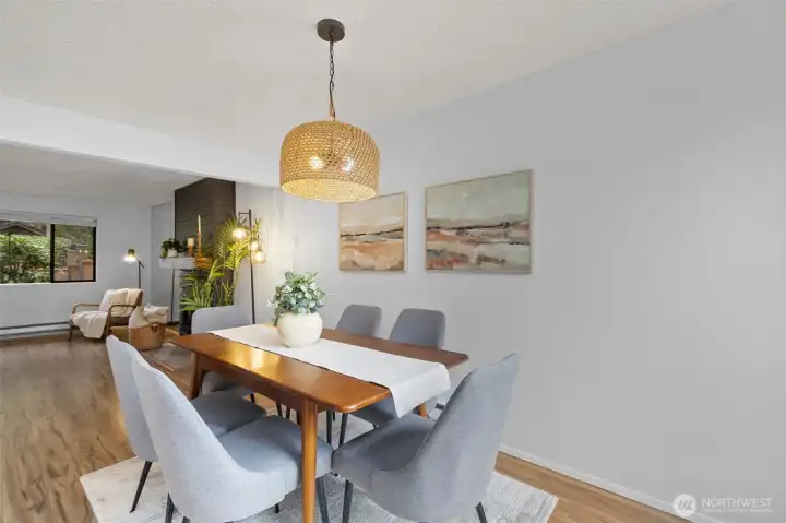 Experience this peaceful townhome style residence at San Souchi. Perfectly situated near the serene trails of Robinswood Community Park and just minutes from Bellevue College. Gated, lush peaceful grounds featuring koi pond and sidewalks. Thoughtful cosmetic updates include updated luxury vinyl plank flooring, paint and carpet. Step inside to discover a thoughtfully laid-out 3 bed/1.5 bath home featuring 1,080 sq ft of comfortable living space. The interior boasts a bright and inviting living area, an efficient kitchen boasting a big bright window, quartz counters and stone tile backsplash. Lovely functional and surprisingly large dining space perfect for everyday living or entertaining guests. Outside, you’ll appreciate the convenience of a 2 Car Garage. The property offers a manageable patio—ideal for relaxing weekends, small plants, and creating your own outdoor retreat. The location truly sets this home apart. Enjoy easy access to parks, walking trails, shopping, and major commuter routes, all while being tucked into a peaceful neighborhood near Robinswood. Well run HOA and top rated schools make this home an attractive option for home buyers.