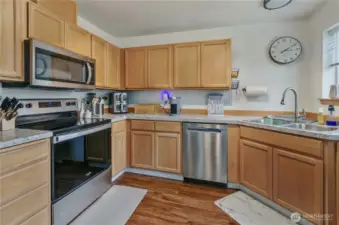 Welcome to Courtney Ridge Estates; where comfort, convenience, and thoughtful updates come together in this well-appointed two-story townhome. Offering 1,274 square feet, this 3 bedroom, 2.5 bath home features a bright vaulted entry that creates an inviting first impression, complemented by durable new LVP flooring throughout the main level. The kitchen has been tastefully refreshed with newer countertops and stainless steel appliances, including a full-size refrigerator, range/oven, dishwasher, and microwave hood; ready for everyday living and effortless entertaining. A convenient main-floor half bath adds functionality for guests. Upstairs, you’ll find all 3 bedrooms along with a separate laundry area equipped with newer washer and dryer. The spacious primary suite offers a walk-in closet and private full bath. Ceiling fans and updated lighting throughout enhance comfort and style, while a newer water heater and garage door motor provide added peace of mind. Enjoy outdoor relaxation on the patio just off the sliding glass door. Parking is a breeze with an attached one-car garage, two driveway spaces, and ample guest parking within the community. HOA dues cover lawn care, common area maintenance, and contribute to the roof fund. Ideally located near Canyon Road’s wide array of dining and shopping options, with easy freeway access and close proximity to JBLM, this home offers both convenience and lifestyle.
