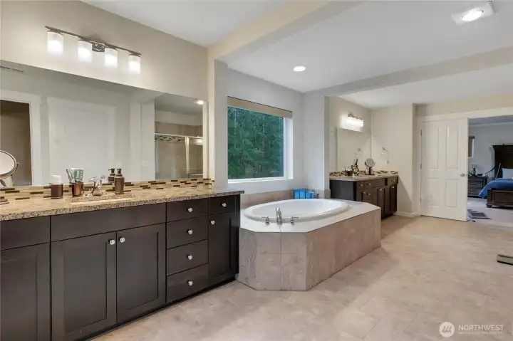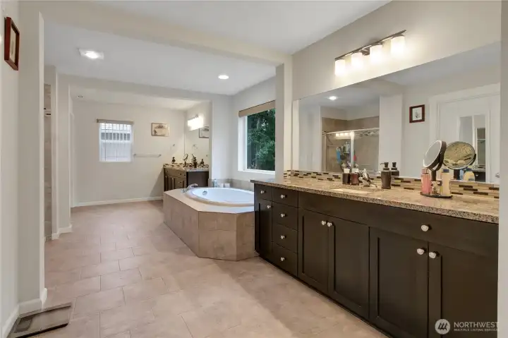 Beautifully upgraded 3,496 sq ft home in Rainier Ridge at Lipoma Firs offering 6 bedrooms (including main floor den/office) and 3.5 baths with a versatile, well-designed layout. Main level features a den/office (optional 6th bedroom) plus a separate first-floor suite with ¾ bath, ADA-accessible shower, and walk-in closet—ideal for multigenerational living. The open-concept main floor includes a spacious great room with gas fireplace and an entertainer’s kitchen featuring a large island, stainless appliances, custom pantry shelving, and upgraded cabinetry with ShelfGenie pull-out shelves and soft-close features. Formal dining room impresses with soaring ~18 ft ceilings. Upstairs, the primary suite offers a generous layout with a full bath, separate soaking tub, dual vanities, and two walk-in closets. Additional bedrooms and a large bonus room provide flexible living space. Extensive upgrades include solar, A/C, upgraded furnace, updated flooring, California Closets, floating shelves and mantle, designer lighting, smart home features (including Alexa-enabled switches, security cameras, and motorized shades), EV charger wiring, hot tub electrical, and LeafFilter gutter system. Outdoor living features a fully fenced yard, extended patio, sprinkler system, and professional landscaping with retaining wall. Community amenities include parks, playgrounds, and a rentable clubhouse. Conveniently located near JBLM, shopping, and within walking distance to the elementary school.
