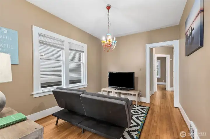 At the North edge of Fremont and the end of Phinney Ridge lays a 5 bed 2 bath Craftsman home ready for its next owner to enjoy its character, charm and big spaces. Surrounded by beautiful neighbors, this is an opportunity to take advantage of the tall ceilings, hardwood floors, period details such as built ins, glass handled doors, an eating nook in the kitchen, a traditional dining room, giant basement with great room and more space to expand. The home features 4 bedrooms on the upper level after an early 1990's remodel added a dormer, and 2 big back bedrooms with peek a boo city view. The main floor has a den, 5th bedroom and full bath. The kitchen is a functional with high ceilings and cabinets, with mud room access to the back yard. The back yard is private with mature plants around it and little garden in the back corner. The home features a shared driveway that leads to the Detached, shared wall garage with a shop for 1 bay and 1 covered parking. The entry porch is surrounded by mature shrubs, just about to burst with flowers and color in time for spring. Natural Gas heat and hot water heater, leaded windows and original charm still intact, homes rarely come available in this area with this much upside or near this price point. Walk to Fremont Ave with its cafes and restaurants, BF DAY to the East or north to the ZOO. One of the most sought-after locations in all of Seattle and a chance to own a classic Seattle Craftsman!