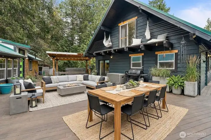 Escape to your own private mountain retreat in North Bend! Nestled on 5 peaceful acres, this chalet-style home offers stunning mountain views and endless opportunity to create your dream lifestyle. The open floor plan is filled with natural light and provides flexible living spaces to fit your needs. Featuring 3 bedrooms and 3 baths, this home blends comfort with potential. Step outside to an expansive deck —perfect for entertaining or relaxing in the hot tub while taking in the serene surroundings. The large shop is ideal for your next creative endeavor, hobbies, or storage for recreational gear. Whether you're looking for a full-time residence or an escape from the everyday, this recreational property offers privacy, space, and opportunity. Bring your vision and make it your own!
