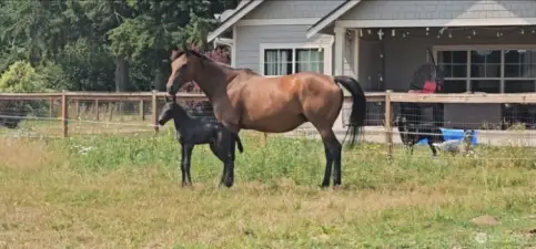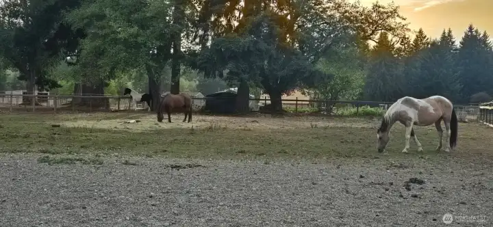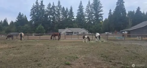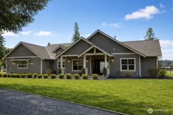 Wow -a 196' x 118' riding arena for training and the custom-built Craftsman rambler for living and entertaining! 5 level acres, fully fenced and cross-fenced, where elevated design meets exceptional functionality for horse and farm enthusiasts alike. A rare opportunity to own a thoughtfully designed 5-acre equestrian property - features, scale, and usability rarely seen at this price point. Tucked at the end of a private drive, this property offers refined living and a fully equipped setup. Stunning great room with vaulted ceilings, rich laminate flooring, and gas fireplace with stone surround. Designer kitchen with quartz counters, full-height backsplash, copper sink, gas range, and large island. Dining room with French doors opens to covered patio. Primary suite with patio access and spa-like 5-piece bath with copper tub and vessel sinks. Two additional bedrooms, office with French doors, and finished garage. Six pastures with water spigots, multiple shelters including oversized foaling shelter, plus 36x36 drive-through barn with attached covered area, hay storage, custom breeding chute, and layup pasture. Gated entry, security system, manicured grounds, and easy access to JBLM, I-5, and nearby amenities.