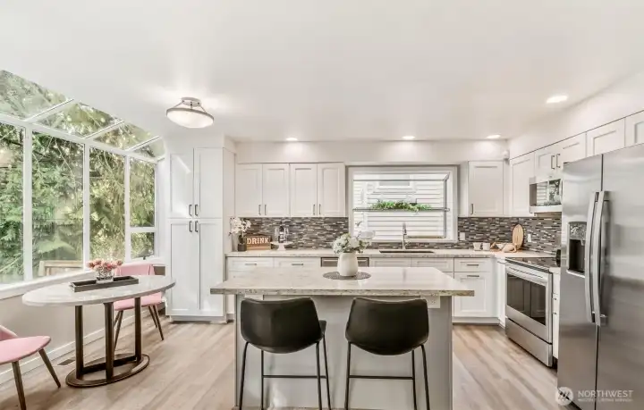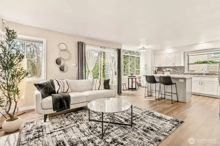 Welcome to the coveted Springbrook neighborhood in Kirkland—most desirable community where homes rarely come to market because owners truly love living here. This East-facing 2-story Single-family home showcases soaring vaulted ceilings & a heartfelt, thoughtfully designed floor plan filled w/ natural light. Big windows & Skylights beautifully illuminate the elegant living & dining spaces, creating a warm and inviting atmosphere. Thoughtfully upgraded throughout ownership, this home features new exterior paint, new blinds, fridge, washer/dryer, custom closet systems, fresh interior paint, updated baseboards, & modern light fixtures. Backyard has been completely transformed with premium paver stonework & a custom-built retaining wall, offering a fully usable, level outdoor space w/ zero maintenance. A perfect home that truly has it all—formal living and dining, a stylish modern kitchen, a spacious family room, and upstairs three generous bedrooms with two full baths, ideally set on a quiet cul-de-sac with beautiful curb appeal and privacy that’s hard to find. Unbeatable location—close to Juanita Beach Park, The Village at Totem Lake, Lake Washington Institute of Technology, easy access to I-405, parks, transit, and all top Kirkland amenities. A short walk to Juanita High School provides access to tennis courts & a swim center. PRE-INSPECTED & move-in ready--a rare opportunity in the Lake Washington School District. Ask for home features list! HOMES HERE DON’T LAST—TOUR NOW!