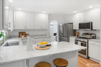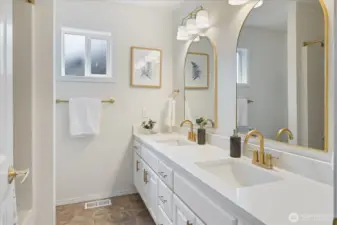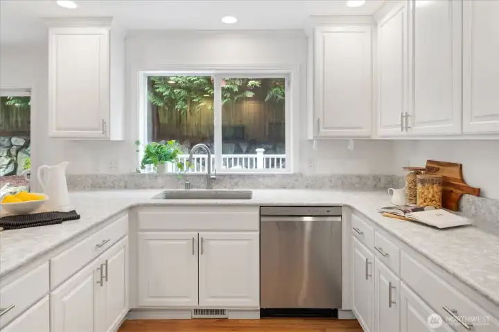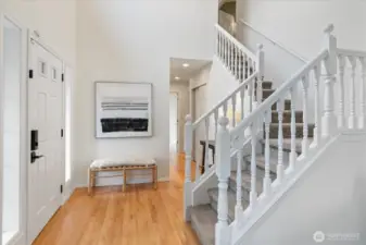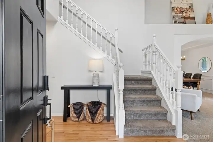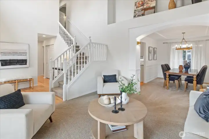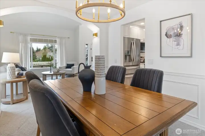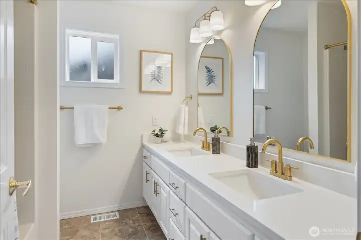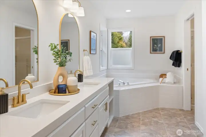 This beautifully updated home, located in the desirable Eastmont neighborhood, offers a perfect balance of modern style and functional comfort. The interior feels bright and airy, with an abundance of natural light, soaring vaulted ceilings, and thoughtful updates that flows seamlessly from the formal dining room to the inviting family room with its gas fireplace. At the heart of the home, the kitchen impresses with sleek quartz countertops, newer stainless steel appliances, and refreshed cabinetry. The primary suite serves as a true retreat, featuring a walk-in closet and a spa-inspired bathroom with a soaking tub and separate shower, while 3 additional spacious bedrooms ensure there is plenty of room for everyone. Each bathroom has been meticulously updated with high-end finishes, elevating every corner of the home. Outside, the private backyard is built for relaxation, boasting a premium Azek deck and a ThermoSpa hot tub. Complete with a high-end Lennox climate control, a newer LG mega-capacity laundry site, and a massive 3-car garage with a mezzanine and ample storage, this home showcases the best of quality craftsmanship and everyday comfort.
