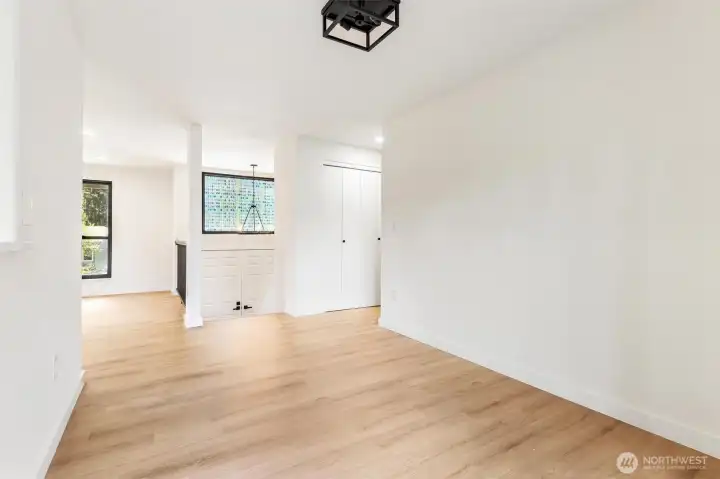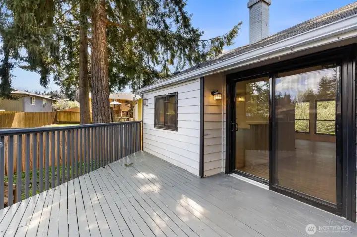 Tucked away in a quiet cul-de-sac with no through traffic, this beautifully updated home offers comfort, style, and an ideal location for commuters with easy access to Highway 18 and I-5. Filled with abundant natural light, the home features new luxury vinyl plank flooring throughout, a striking black fireplace that anchors the inviting living space, and elegant iron railing accents. The updated kitchen showcases quartz countertops and stainless steel appliances, flowing seamlessly into the dining area with direct deck access—perfect for indoor-outdoor living. The main-floor primary suite offers convenience and privacy with an en-suite bath and French doors, while the spacious lower-level bonus area with its own bathroom and backyard access provides versatile living options for guests, work, or recreation. Enjoy garden space in the backyard and a prime location near schools, shopping, dining, The Commons at Federal Way, and Twin Lakes Golf & Country Club, making this home the perfect blend of lifestyle and accessibility.