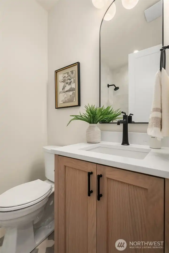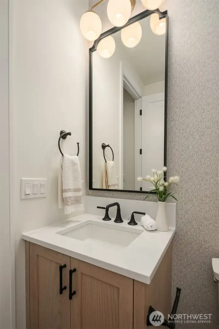 Location. Presence. Attainable. Not just a Cottage — an architectural moment quietly set within the highly desirable East of Market community. Set off a quiet, private lane serving just two homes, this one-of-a-kind residence blends refined design with effortless livability on a level lot framed by a fully fenced backyard retreat. Inside, the home unfolds with intention. A welcoming entry corridor flows seamlessly into a cozy dining area and a chef-inspired kitchen appointed with Café appliances. The Great Room commands attention with soaring 12-foot vaulted ceilings and a dramatic floor-to-ceiling fireplace — a striking centerpiece anchoring the entire living experience. Designer lighting throughout adds warmth and statement-piece finishes that elevate every corner of the home.Two bedrooms feature vaulted ceilings, while 2.5 thoughtfully designed baths showcase curated tile, statement lighting, and designer mirrors. Modern comforts elevate everyday living: toe-kick ambient lighting enhancing both the primary bath and powder room, keyless entry, EV charging pre-wired in the fully insulated garage. Walkable to Market Street, Waverley Beach, and top-ranked Peter Kirk Elementary & Kirkland Middle schools, yet tucked away for privacy — a rare balance of lifestyle and design.Thoughtfully engineered. Visually unapologetic. A distinctive East of Market opportunity priced for the real world.