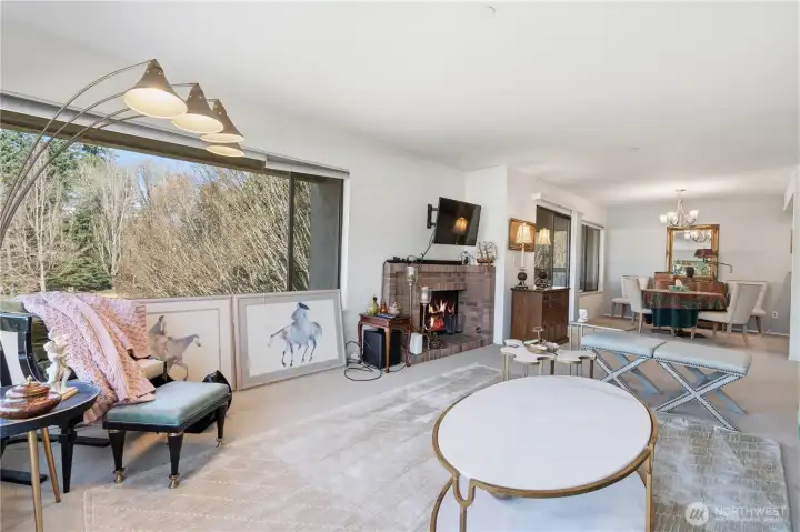 Located in the heart of Old Bellevue, this top-floor corner Penthouse perfectly blends privacy, natural views, and urban convenience. Overlooking Wildwood Park with glimpses of Lake Washington, it offers a serene retreat right in the city center. Bright and airy, the home features large windows that fill the space with natural light. The living room includes a cozy fireplace and opens to a private covered balcony, providing a peaceful outdoor space to enjoy greenery year-round. The kitchen is thoughtfully designed with ample cabinetry, a convenient pass-through window, and a sink that overlooks the dining area, combining style and functionality. The spacious primary bedroom offers dual closets and a private ensuite, with both bedrooms enjoying partial water views. The second bedroom and full guest bath provide flexible space for guests, office, or multi-purpose use. Additional features include in-unit laundry and abundant storage. This unit comes with two dedicated underground parking spaces, a rare amenity in this area, while the building provides secure entry, a well-maintained lobby, and elevator access. With a Walk Score of 89, residents enjoy easy access to parks, Meydenbauer Bay, public transit, and downtown Bellevue’s shopping and dining destinations. Combining prime location, views, and value, this top-floor corner unit is a standout opportunity in today’s market.