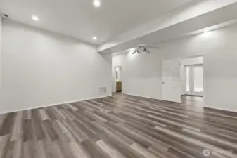 Amazing opportunity to own a truly multi-functional home! The main level features an elegant entry, a large laundry/utility room, and a spacious Rec room with a full bath—ideal for running a personal business or creating a private workspace while enjoying separate living quarters upstairs. The versatile 6-car garage offers exceptional flexibility for storage, hobbies, or business use. There is so much space to customize and make your own. Upstairs, enjoy a huge open-concept great room filled with natural light, along with a well-appointed kitchen featuring a large island and abundant cabinet space. The primary bedroom includes a generous full bath. A fenced, well-sized yard provides excellent privacy. Conveniently located with quick access—just 4 minutes to I-5 and the new light rail station, making commuting a breeze.