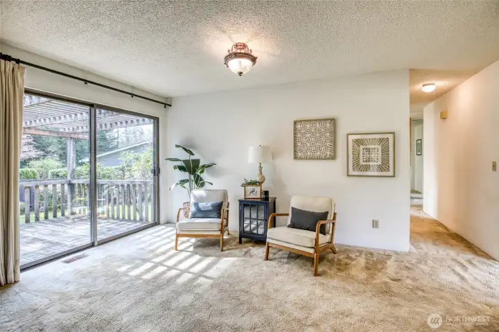 Remarkably well cared for 1979 rambler on 1/3 acre, located in the beautiful Central Park neighborhood. This home welcomes you with the pristine landscaping and terraced areas off the back deck and yard. Very large living/dining room with vaulted ceilings. Bright with many windows and warmed with an attractive brick fireplace. The kitchen/great room, around the corner also has a 2nd brick fireplace. Slider to the wood deck overlooks this wonderful, gardened area. 2 bedrooms, one being the primary with a 3/4 bath. Off the kitchen is the spacious laundry room and 1/2 bath. Door also leading to the deck. Electric furnace, mini split and wood heat the home.