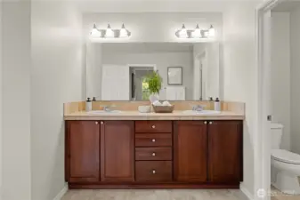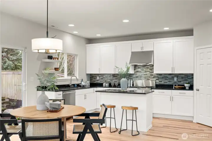 Refined elegance meets modern comfort in this beautifully updated home in Ridgewood at North Creek. A gracious covered front porch sets a welcoming tone, leading into a striking two-story foyer bathed in natural light. Main level den/study with glass French doors offers the perfect spot for an at home office. Newly refinished hardwood floors, fresh designer paint, and plush new carpeting create a sophisticated, move-in ready interior. The thoughtfully curated island kitchen is both stylish and functional, featuring stainless steel appliances, slab granite countertops, a full-height tile backsplash, walk-in pantry, and a dedicated wine refrigerator—perfect for elevated everyday living and effortless entertaining. Upstairs, four generously proportioned bedrooms offer comfort and versatility, while the home’s well-designed layout balances openness with defined living spaces. New high efficiency furnace installed in April 2025 and new hot water tank installed in 2024. Central AC keeps you cool and comfortable throughout the summer months. Outdoors, the fully fenced yard provides a private retreat, enhanced by soft, dappled afternoon light—an inviting backdrop for quiet relaxation or intimate gatherings. Ideally located just minutes from the charm of downtown Bothell and the renowned wineries, dining, and amenities of Woodinville, this exceptional home offers a rare blend of timeless style, thoughtful updates, and premier convenience. Award winning Northshore School District.