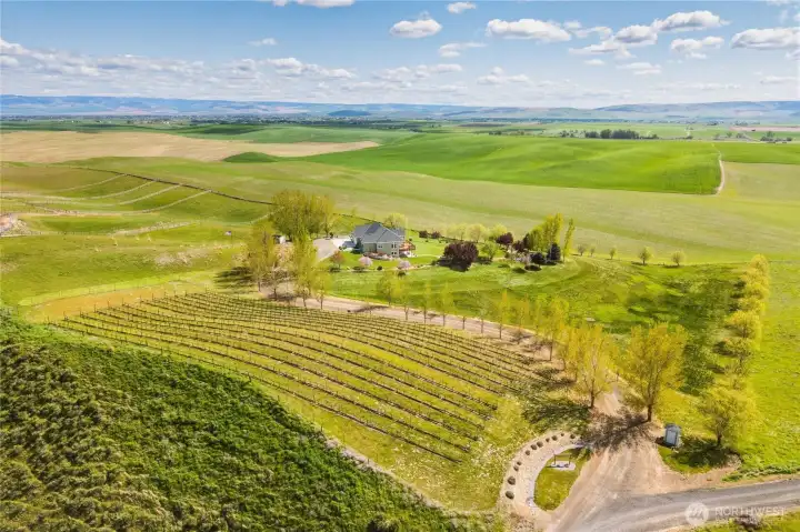 If you want to experience the Walla Walla Lifestyle while enjoying a little "elbow room" this stunning property may be what you have been waiting to find. Tree lined drive, 10 irrigated acres (2 wells) and for the "Vintner at heart" 1 acre producing Syrah and Sauvignon Blanc vines. Sitting proudly with an unobstructed view of the Blue Mountains to the East and breathtaking sunsets to the West make this property one of a kind. Exceptional Larry Lofthouse Quality Built. Architecturally designed with the convenience of main floor living plus the additional light filled bonus lower level gathering room with "walk out." Great for multi- generational living or separated space. 4 bedroom, 4bath (both levels featuring an ensuite) Gracious entry opens to spacious living, dining and kitchen. Plenty of room to gather and create meals and making memories. Sip that first cup of coffee, BBQ, dine alfresco and watch the sunset from wrap deck. Primary suite on main level, garden tub, tiled shower and spacious closet. On chilly days enjoy the gas fireplaces on both levels. If working from home is an option, you will enjoy the office/library off entry. Picnic under the pergola and roast s'mores over fire pit! 3 car garage, garden area all set with drip. Park your RV or boat. Plenty room for a pool and or a shop. Imagine the possibilities. Please call for a private showing.