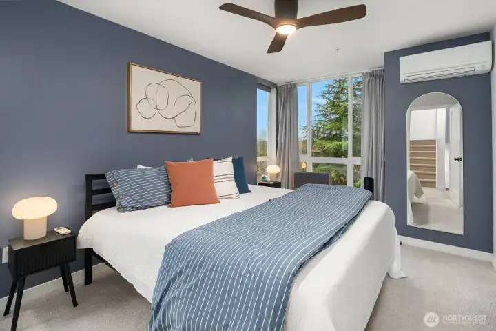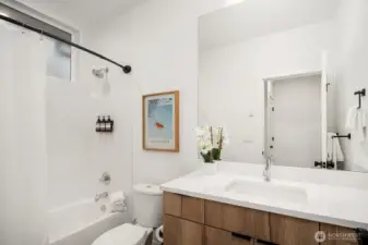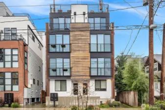 Pristine end-unit townhome offering urban privacy in the heart of Seattle, perfectly positioned between Capitol Hill and the Central District with a 95 Walk Score. At 2 bed, 1.75 bath and built in 2022, this architecturally modern home delivers the best of city living without compromise. The entry level welcomes you with a spacious guest bedroom and full bath, offering privacy and flexibility for visitors or a dedicated home office. One floor up, the open kitchen and dining area flow seamlessly into the living space, bathed in natural light from floor-to-ceiling windows and vaulted ceilings that create an airy, expansive feel. A versatile loft above provides the bonus space for dining, work, fitness, or creative pursuits. The full-floor primary suite is a true retreat, featuring a spa-inspired bath and custom California Closets. Above it all, a private rooftop deck rewards you with sweeping mountain views, ideal for morning coffee or evening gatherings, plus a small private turf yard. Thoughtful upgrades throughout include engineered hardwood, new carpet, and efficient mini-split systems for added peace of mind. Steps from PCC, Central Cinema, and the best of 23rd and Union, this location is unmatched. Three major bus lines, top-rated dining, local boutiques, and the cultural energy of two of Seattle's most beloved neighborhoods are all at your doorstep. Easy access to First Hill, the Central District, and Downtown makes this a home base for everything the city has to offer.