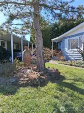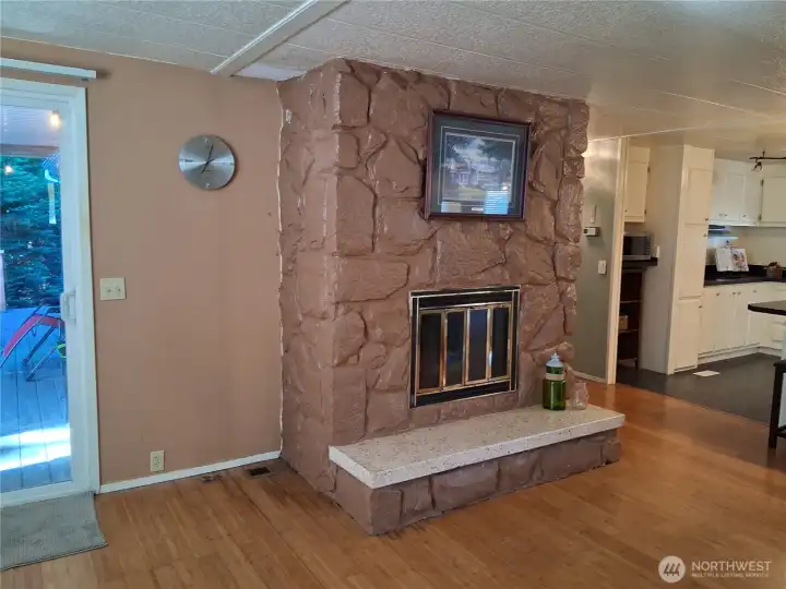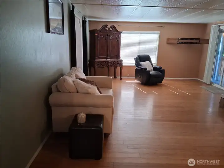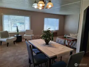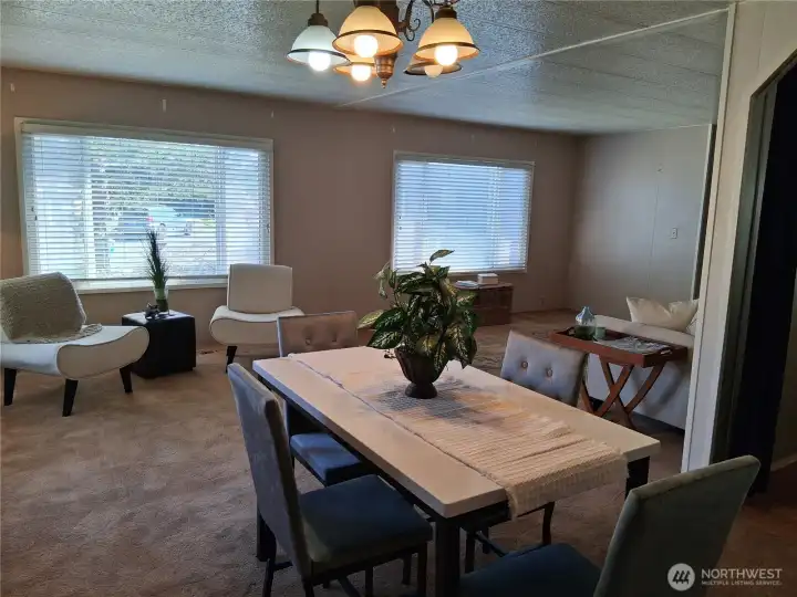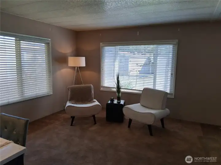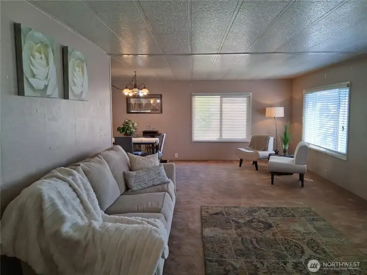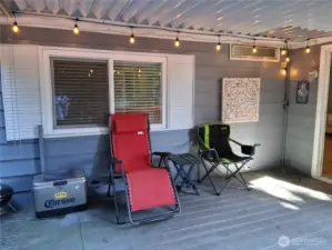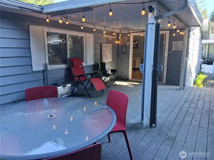 Spacious and inviting 2 bedroom, 2 bath home with an open floor plan, two living areas, dining space, and a separate laundry room. The primary suite includes a private bath for added comfort. Enjoy year-round outdoor living on the large, partially covered back deck with shades and removable partition walls. Situated on a large corner lot with a 10'x18' storage shed or shop. Stay cool with an efficient heat pump. Community amenities include a kitchen, meeting space, library, gym, sauna, and outdoor gazebo. A must see! You'll fall in love!
