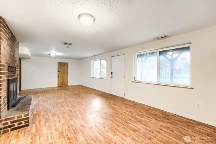 Discover this delightful, move-in-ready Steilacoom home! Brand new floors and an upgraded custom kitchen with stainless steel appliances. Double the size backyard and plenty of storage. Basement family room with a fireplace, plus an additional unfinished room with plumbing roughed in for another bathroom and bedroom! Three bedrooms with 2 baths on the main floor, featuring a large kitchen with an eat-in area and an oversized great room with an upgraded fireplace for gathering. This home has everything: a quiet street, wooded scenery, a usable yard, huge garage, all in close proximity to what Steilacoom offers—the ferry, coffee shops, shopping and more. Includes a 1 year warranty too!