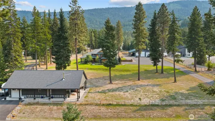 Amazing opportunity for your very own compound! You'll love this property with the 3,700 sq foothome, a 1,036 sq foot guest house and a 4,871 sq foot shop. The elegant, country style home, offers immense livingspaces with finer finishes, an entertainment sized kitchen with eating bar, & a cooking island that opens to the red room& fireplace, perfect for your gatherings. Enjoy the large open floor plan, vaulted ceilings & an oversized laundry/mudroom. An added bonus, a nearly brand new one story, 2 bed/2 bath guest house with a one car garage that would makea great short term rental or guest quarters. The large shop, much of it heated, will fit your toys & your friend's toys!Walk, ride or snowmobile to the Sno Park. Sweet!