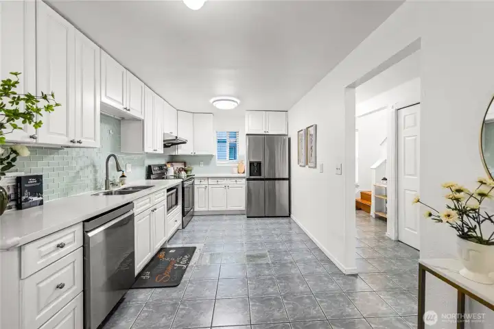 A rare opportunity in the heart of downtown Bellevue. This community of 20 townhomes offers a quiet courtyard setting and a secured garage with two assigned parking spaces, guest parking, and storage. Inside, the open great-room layout includes luxury plank flooring, neutral tones, updated lighting, and a tiled fireplace. The newly remodeled kitchen features white cabinetry, upgraded stainless-steel appliances, and modern slab surfaces. The primary suite offers a cozy sitting area, a balcony with skyline views, two closets, and a remodeled bath. A private patio adds room for outdoor living. Close to downtown amenities, major tech employers, the upcoming Amazon HQ, and access to I-405 and SR-520. No rental cap. A rare find in this area!