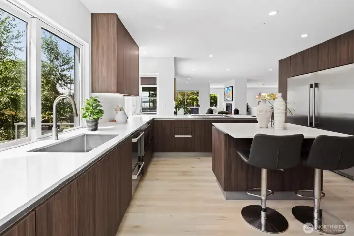 300K PRICE IMPROVEMENT on this one-of-a-kind luxury home boasting views of Lake Washington, Olympic Mountains and Seattle skyline from all floors accessible by elevator or stairs. Situated on a large 17,099 sf private lot, 1 block to Lake Washington, close to Cross Kirkland Corridor Trail, parks, downtown Kirkland and I-405/520. This contemporary home was thoughtfully designed by an architect for her own family, with an emphasis on creating a warm, inviting space with dramatic natural light for living and entertaining. It features a generous primary bedroom suite, four car garage, ADA access, a large home gym, 4 stop elevator, 1500 sf decks, and a rooftop indoor/outdoor family room with kitchenette and sauna and ready for 8 x 13 ft swim spa.