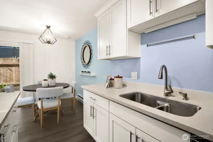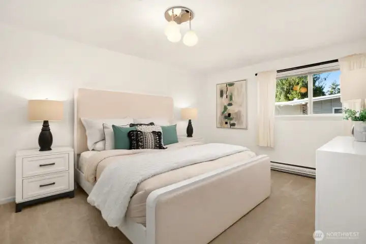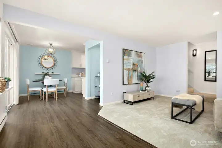 Welcome home to Newport Hills Townhomes! This fabulous western-facing townhome is move-in ready/w brand-new carpets & updated Kitchen/w Quartz counter tops and newer cabinets. The main floor’s open feel has wall of windows that invite the afternoon sun. Upstairs, you’ll find two oversized bedrooms providing a quiet retreat. Spend your summer evenings grilling on your private fenced patio or lounging by the complex pool. Great Schools of Tyee middle & Newport High. Convenient to shops, restaurants, downtown Bellevue. Walk to Newport Hills Swim & Tennis Club with pools, tennis and Pickleball courts, Gym with affordable membership. Ample guest parking