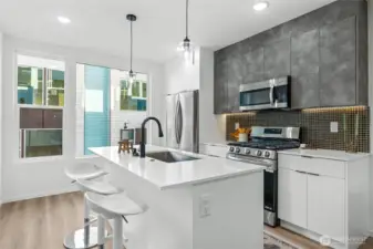 Modern Living in Cedar Park | Experience elevated urban living in this beautifully crafted new construction home in the highly sought-after Cedar Park neighborhood. Designed with both style and functionality in mind, this residence offers a perfect blend of comfort and contemporary luxury. The main level features expansive picture windows that flood the space with natural light, a chic powder room, and a thoughtfully designed open-concept kitchen that flows effortlessly into the living area—ideal for both everyday living and entertaining. Step outside to your private patio, perfect for relaxing or hosting guests. Upstairs, you’ll find two bright and spacious bedrooms along with a tastefully finished full bathroom. The entire top floor is dedicated to a serene primary suite, complete with a generous bedroom, double vanity, walk-in shower, and versatile flex space—perfect for a home office, reading nook, or fitness area. Take in sweeping views from the expansive rooftop deck, an ideal setting for morning coffee or evening gatherings. With a Walk Score of 87, you’re just steps from local dining, parks, and convenient freeway access—bringing the best of city living right to your doorstep.