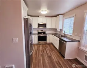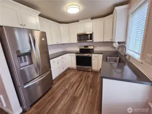 Lovely ground level home with updated stainless appliances with well appointed kitchen filled with drawers and soft close cabinetry. 3 bedrooms in this unit with ample space for all and maybe a hobby room. Oversize bathroom is spacious and extra room for toiletries and personal items. Single level living removes any challenge of stairs, ADA compatible. Nice inviting deck to hang out on with attached storage. New siding, roof, windows, decks, gutters, and landscaping. Access to local amenities and activities. Near bus line and medical facilities.