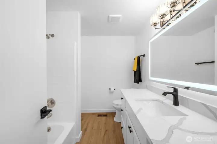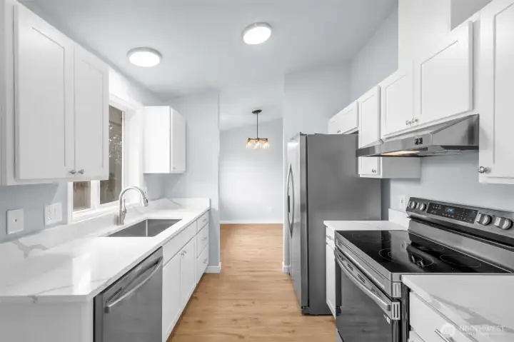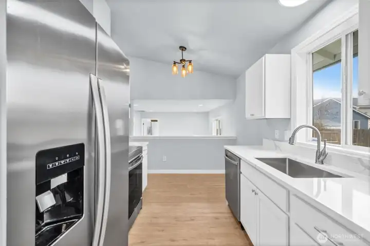 This beautifully remodeled home offers a bright, open feel with soaring vaulted ceilings and fresh interior and exterior paint. Thoughtfully updated throughout, the home features a brand new roof, new trim, modern light fixtures, stylish cabinetry, quartz countertops, stainless steel appliances, updated lighting, and beautiful new flooring. All the bathrooms have been fully updated with new cabinetry and fixtures. The open-concept design creates a seamless flow between the living, dining, and kitchen areas—perfect for both everyday living and entertaining. And don’t miss the huge backyard—fully fenced and ready for all your entertaining needs!
