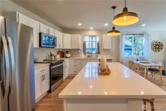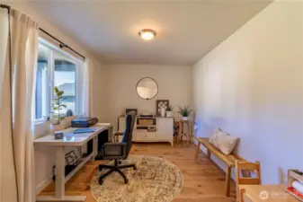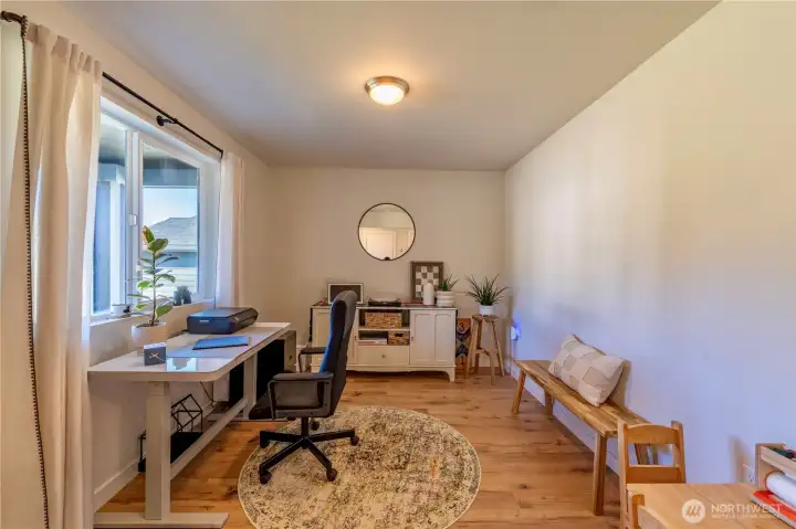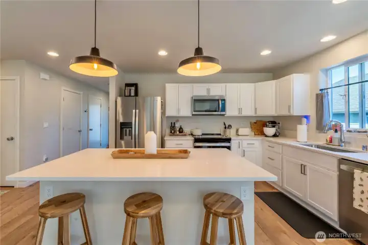Better than new and thoughtfully upgraded, this stylish single-level home in The Reserve at Valley Creek offers comfort, function, and modern appeal. Inside, you’ll find quartz countertops, stainless steel appliances, with all appliances included, durable laminate flooring, and an open-concept layout designed for easy living and entertaining. Just off the entry, a dedicated office provides the perfect space for working from home or quiet focus. The primary suite features a walk-in closet and private bath, while two additional bedrooms offer flexibility for guests or hobbies. Stay comfortable year-round with an efficient ductless heat pump and enjoy added storage throughout. Out back, the home opens to expansive green space (church property) with no direct rear neighbors, creating a peaceful setting with room to relax, play, or unwind. Located just minutes from town and Olympic National Park, this move-in ready home is one you won’t want to miss.