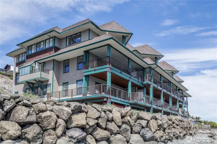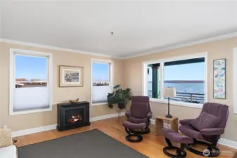 Breathtaking waterfront living awaits! This beautifully renovated main-level end unit condo offers panoramic views of PT Bay—with an active boat & marine life, watch the ferry glide by & enjoy stunning sunrises from the comfort of your home. Just a 5-minute stroll from the vibrant downtown area, you’ll have easy access to top-notch restaurants & shopping. The modern kitchen features granite countertops, Stainless steel appliances, wine fridge & ample storage, perfect for any home chef. Enjoy the oversized deck & listen to the waves lapping on the shoreline. Primary suite features deep soaking tub. Wood burning fireplace in living rm. Garage parking included. Don’t miss this chance to own your private piece of waterfront paradise!