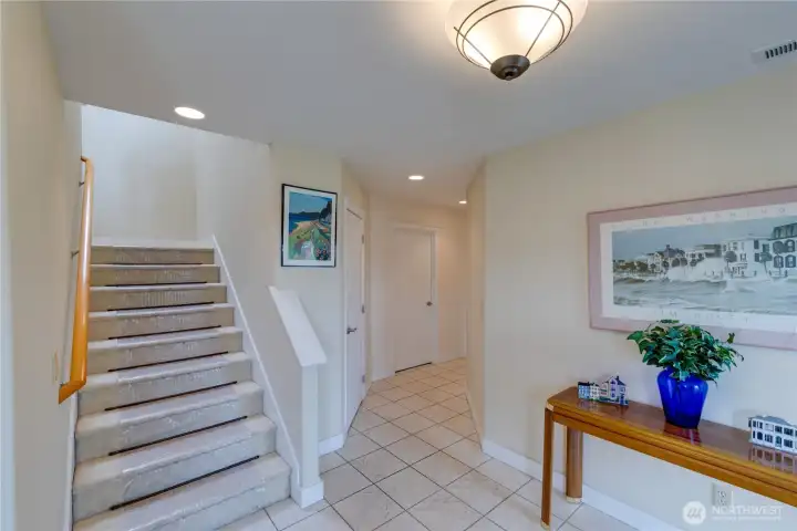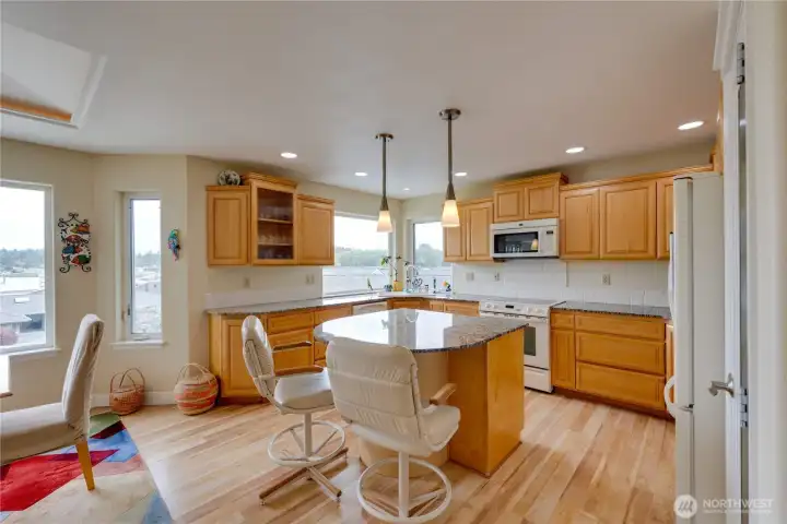 Nestled in the coveted Shelter Bay community, this bright and spacious 2-story home offers breathtaking views of the marina and the iconic Rainbow Bridge, providing the perfect backdrop for a relaxed, outdoor-inspired lifestyle. The expansive second floor is where the magic happens, with the main living area designed to take full advantage of the picturesque scenery. Main floor has potential for mother in law suite as it's wired for water. The sunken living room features a double-sided gas fireplace and a cozy bench seat nook, creating a warm and inviting atmosphere. Hardwood floors extend throughout the kitchen and dining areas, adding elegance to the space. The kitchen is a chef’s dream with granite countertops, a beautiful tile backsplash, a generous center island with seating, and stylish pendant lighting, all perfect for cooking and entertaining. The primary suite is a peaceful retreat, complete with a jetted soaking tub, a walk-in shower, and direct access to the deck, where you can enjoy the fresh air and stunning views. The lower level is home to ample storage space and a workshop off the garage. Shelter Bay amenities enhance this home’s appeal, offering marinas, beach access, a par 3 golf course, sports courts, and a seasonal pool—making it the ideal home for outdoor enthusiasts.