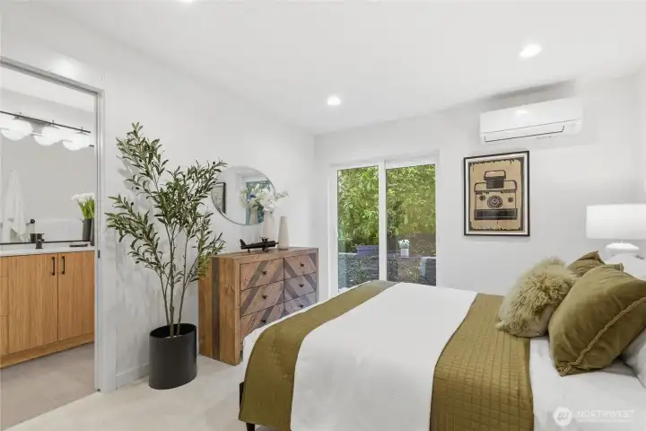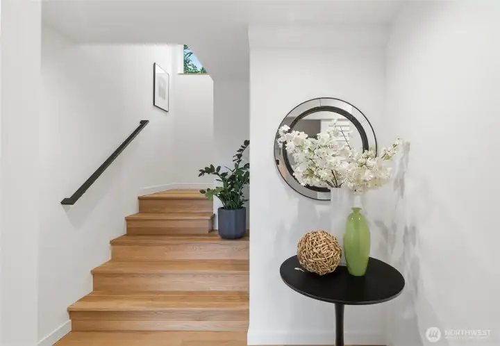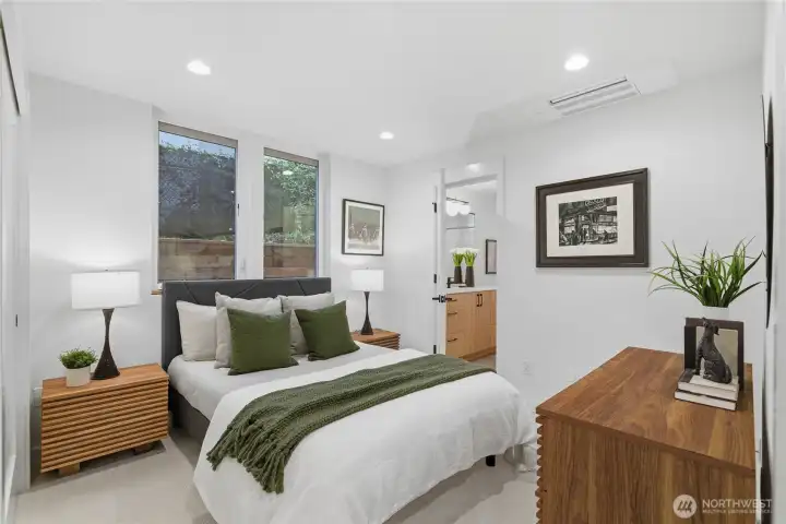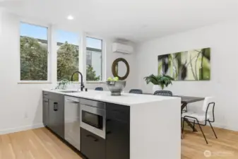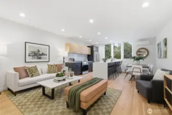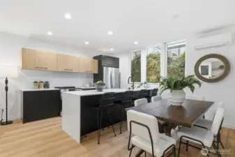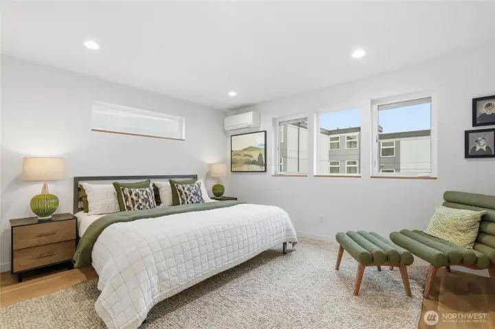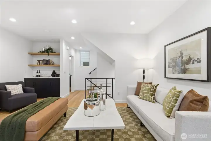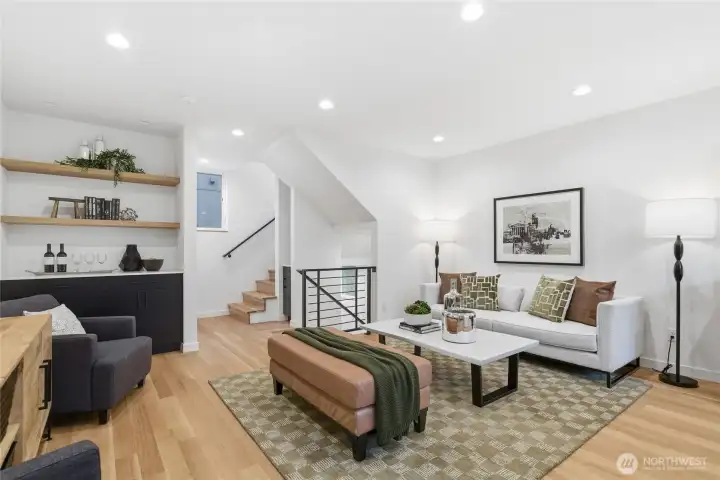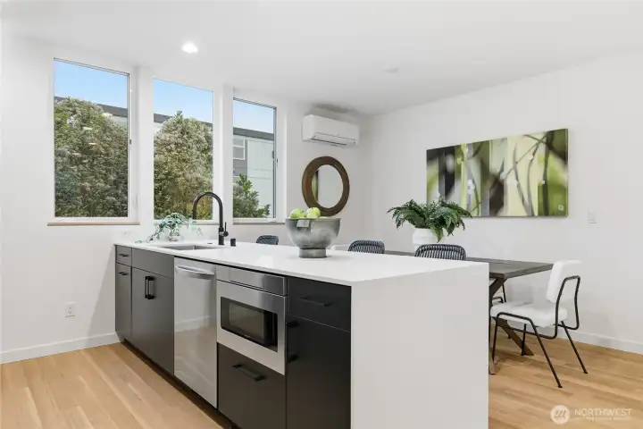 Crisp modern design meets everyday comfort. Four spacious brand-new homes from BuildSound in the heart of Fremont, the Center of the Universe, yet tucked in away from the hustle and bustle of city living. Step into a main-floor great room with wide-plank floors and a standout kitchen featuring a custom tile backsplash, quartz counters, modern cabinets, and stainless appliances. The primary suite offers a spacious ensuite bathroom and generous closet upstairs, with two lower-level bedrooms ideal for guests or work from home. Entertain guests and enjoy stunning views from your private roof deck. Assigned EV-ready parking space. Walk Score 95 - steps away Fremont’s shops, restaurants, and nightlife. Easy commute to SLU/Downtown Seattle.