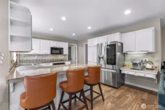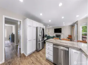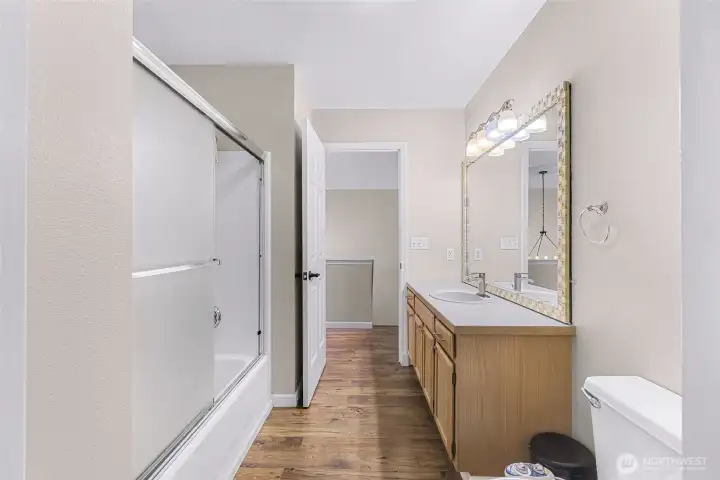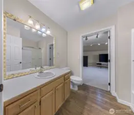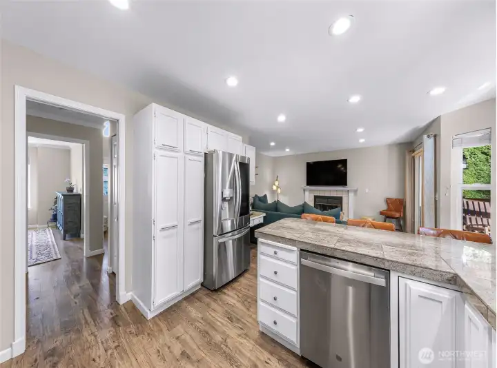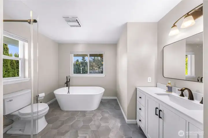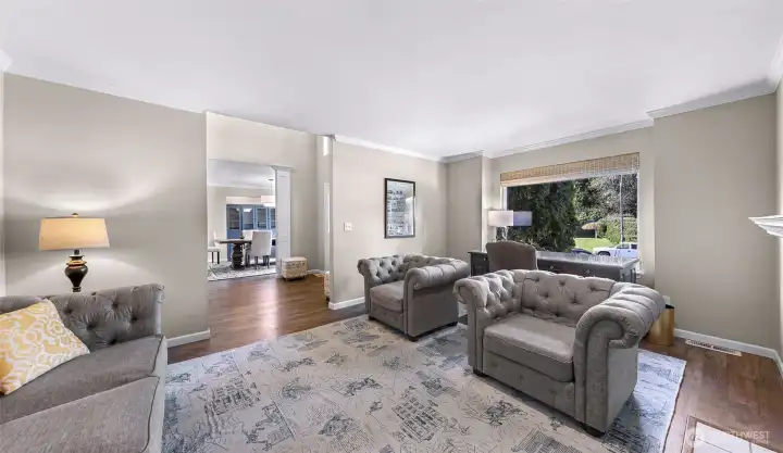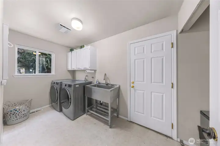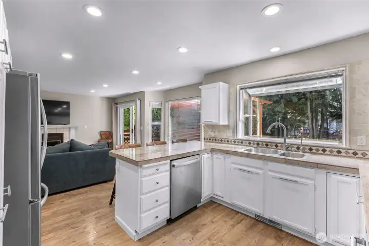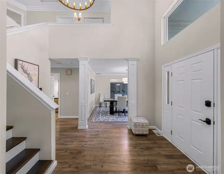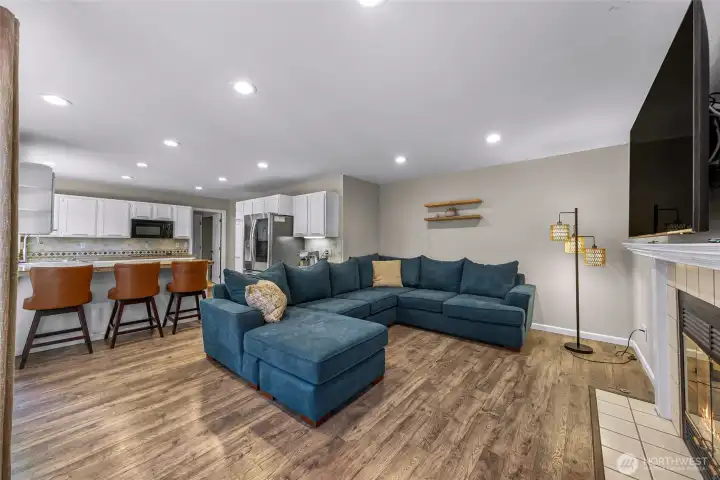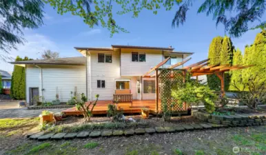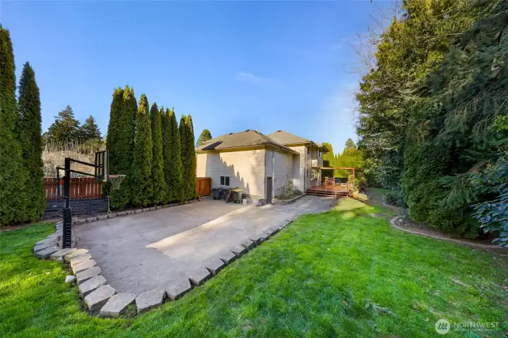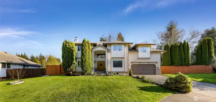 Expansive and thoughtfully designed, this home offers space, flexibility, and endless potential. Featuring 4 bedrooms plus a large bonus room, the layout is both functional and inviting with a blend of formal and casual living spaces. Enjoy a formal living room with a gas fireplace, dining room, and a spacious kitchen that flows seamlessly into a separate family room with fireplace - ideal for everyday living and entertaining. The home centers around a striking staircase with tall ceilings and modern fixtures, complemented by low-maintenance LVP flooring, quality trim, and a large mudroom off the garage with a washer and dryer. The primary suite is a true retreat with a spa-like bathroom featuring a custom tile shower and soaking tub. Step outside to a private, oversized backyard with mature landscaping, berry garden, raised beds, patio, partially covered deck, and sports court - offering incredible versatility for entertaining, gardening, or simply enjoying the space. The large bonus room above the garage features its own separate entrance, creating the perfect setup for guests, multi-generational living, or a media room. Additional updates include a newer furnace, hot water heater, and water softener/carbon filtration system. Conveniently located near parks, schools, and with easy access to I-5, making commuting to Bellingham or beyond a breeze.