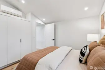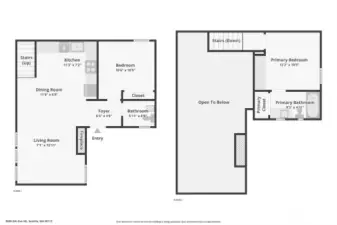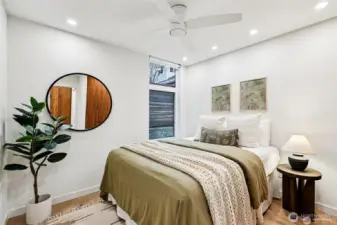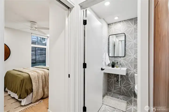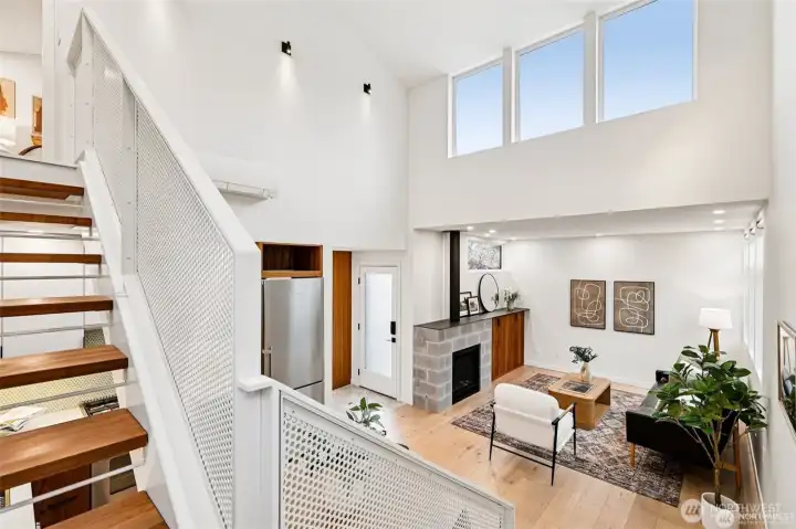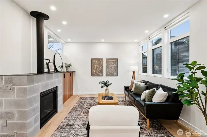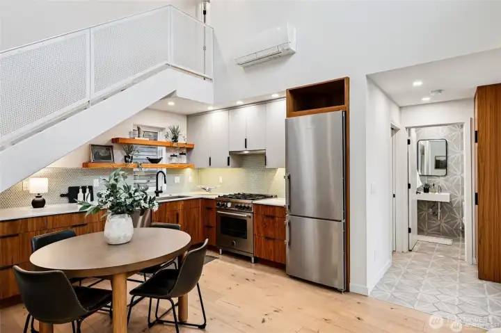 Unique and creatively designed "modern bungalow" located in desirable Maple Leaf. Sleek design and inviting natural elements including high ceilings with great natural light, wood flooring, a wood and metal staircase, stone surfaces and steel accents. The main floor features a kitchen with stainless steel appliances opening up to a living room area with a statement fireplace and a mini-split for comfortable heating and cooling, as well as a bathroom and bedroom, also perfect for an at-home office. Upstairs additional bedroom with an en suite bathroom. Truly unique spaces in an amazing location.