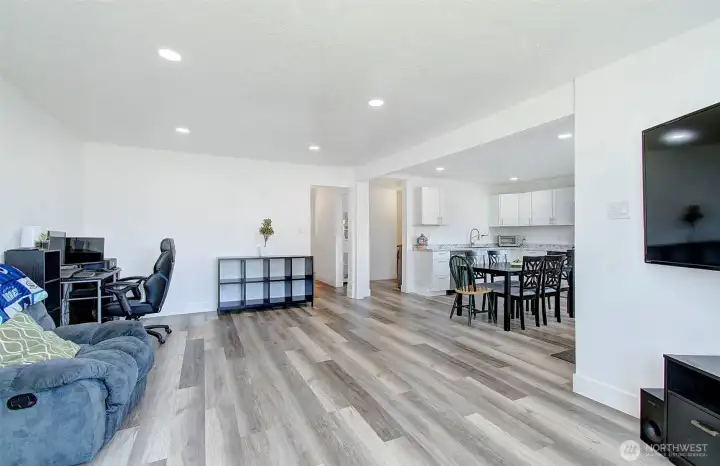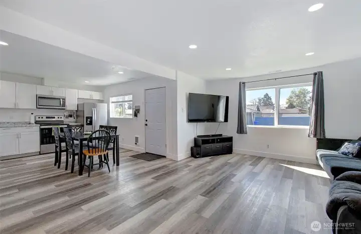 Charming 3 bed, 1 bath home offering 1,092 sqft of updated living space in the heart of Kelso. Interior features include LVP flooring, energy-efficient lighting, and a bright, modern feel with neutral white walls throughout. Functional layout with laundry room off the kitchen, including washer and dryer, plus space for pantry or additional storage. Home is equipped with central air for year-round comfort. Level, in-town lot with partially fenced front yard and driveway parking. Convenient location near shopping, services, and main routes. Low-maintenance property with modern updates—move-in ready.
