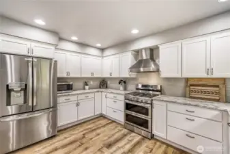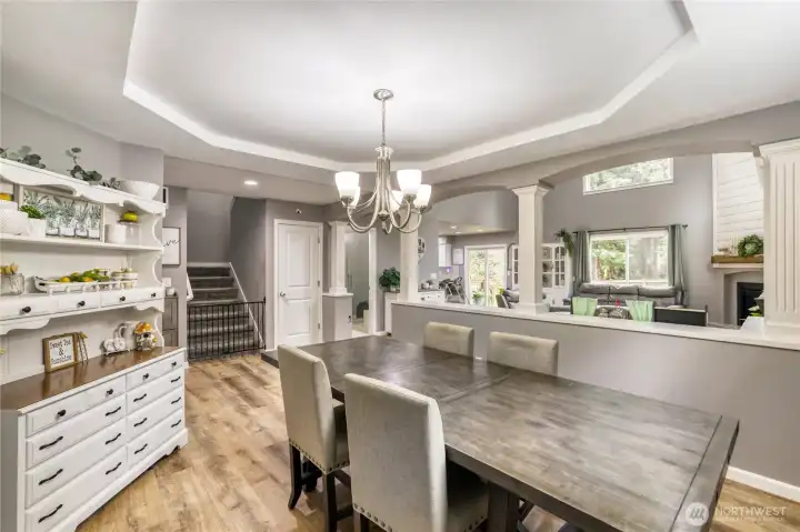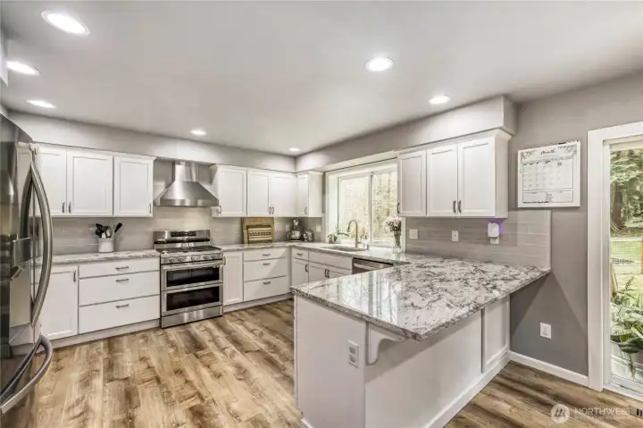 Privacy, upgrades, acreage - this home has it all! Set on 1.76 serene acres on a low-traffic street, you can truly escape the hustle & bustle of busy life here & surround yourself with nature's splendor. An inviting entryway leads you into a grand living space w/ soaring 2-story ceilings, a centerpiece fireplace, new vinyl plank floors & bold craftsman detailing. Invite your entire network over for movie nights, Mariners games & summer BBQs - this space was meant to host in! Flow seamlessly into the spacious dining area & impressive kitchen, equipped w/ updated appliances, granite counters & endless storage in newer cabinetry. Experience a true blend of indoor-outdoor living as you move effortless onto the covered patio overlooking your private backyard oasis, complete w/ a playset, dog run, apple trees & vast amounts of space for gardens, hobbies & play. Versatile main floor office could also be the ideal guest space. 3 bedrooms upstairs including a generous primary w/ vaulted ceilings, new carpet, a walk-in closet & 5-piece ensuite bath. Upgraded for easy modern living w/ a new furnace, all-new trim/interior doors/molding, new floors in both upstairs bathrooms & a new septic pump. Abundant room for parking, projects + your RV/boat between the roomy driveway, garage (w/ EV charger), & parking pad. Unbeatably private, yet situated only minutes from Lake Stevens' award-winning schools & convenient amenities.
