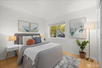 Rare two story, end-unit, corner-lot townhome in the heart of Redmond. Beautifully updated with an open floor plan featuring high ceilings, abundant natural light, and a stunning new kitchen with modern cabinetry, quarts counter tops, and stainless appliances. The living room offers a cozy wood-burning fireplace—perfect for crisp Northwest evenings. The spacious dining area opens to a private patio overlooking lush green space and trails. Upstairs, the vaulted primary suite with bay-windows offers an en-suite full bath with heated floors and an upscale, custom walk-in closet. Two additional light and bright bedrooms share an updated full bath with radiant heat. Attached garage with abundant storage. Ample guest parking and unlimited street parking. Minutes to Microsoft, Amazon, Meta, light rail, Redmond Transit Center, Redmond Town Center, shopping, dining, and top-rated LWSD schools. Easy freeway access. Well-managed HOA covers exterior, roof, siding, lawn-service & landscaping, building insurance, and water & sewer. Pre-inspected and move-in ready. No rental cap. Don’t miss the opportunity to own this gorgeous, 3-bedroom townhome in an unbeatable location!