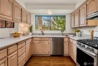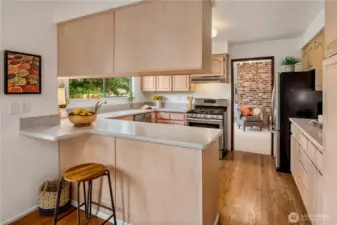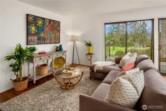 Perfectly positioned on the 14th hole at Meridian Golf & Country Club, this light-filled residence offers effortless one-level living, thoughtfully designed with nearly 2,000 square feet on the main level. The home features a sunken living room anchored by a cozy gas fireplace, creating a warm and inviting gathering space. Freshly painted interior, new carpet and rich hardwood floors blend seamlessly to deliver a move-in ready experience. Downstairs, an expansive lower level provides the perfect setting for entertaining with a dedicated bar area, along with additional storage and workshop space. A 2-car attached garage adds everyday convenience, while the golf course backdrop enhances the home’s sense of tranquility and connection to the outdoors. Meridian Valley Country Club is one South King County's premier private clubs, offering a rare blend of championship golf, natural beauty and a vibrant, community-driven lifestyle. Original owner and first time on the market in 50+ years - bright, spacious and ideally located, this is country club living at its best!