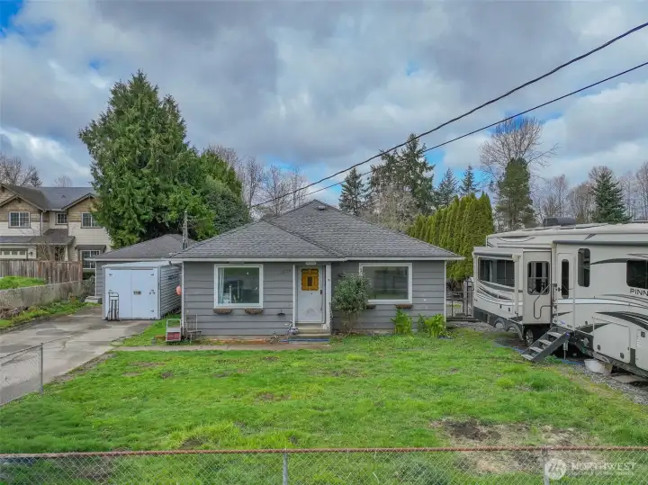 This is the rambler you've been waiting for! 2 bedroom + possible 3rd bedroom or den and 2 bathrooms. Just the perfect size house set on a 1/3 of an acre lot. RV parking and attached garage and plenty of space for a shop, boat, and multiple vehicles. Surrounded by large homes on spacious lots, so amazing opportunity. Beautiful hardwood oak floors and cute farmhouse style kitchen. Bathroom has new shower and vanity. Fully fenced with animal fencing to support small homesteading. Bring all the animals, plenty of flat usable land to roam.