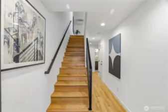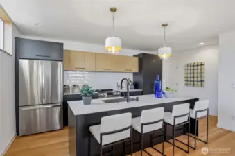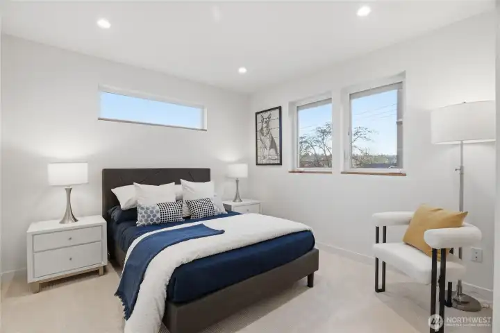 Crisp modern design meets everyday comfort. With a garage! Four brand-new homes from BuildSound in the heart of Fremont, the Center of the Universe, yet tucked in away from the hustle and bustle of city living. Step into a main-floor great room with wide-plank floors and a standout kitchen featuring a custom tile backsplash, quartz counters, modern cabinets, and stainless appliances. The primary suite offers a spacious ensuite bathroom and generous closet upstairs, with two lower-level bedrooms ideal for guests or work from home. Entertain guests and enjoy stunning views from your private roof deck. Walk Score 95 - steps away Fremont’s shops, restaurants, and nightlife. Easy commute to SLU/Downtown Seattle.
