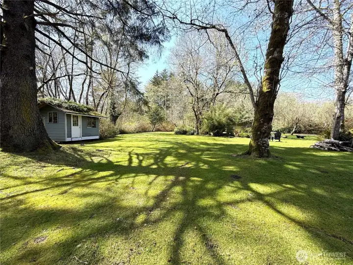 Charming and cozy 2-bedroom cabin nestled in a peaceful wooded setting! This inviting home offers a spacious living area and a functional eat-in kitchen, perfect for comfortable everyday living or a relaxing getaway.The property includes a 1-car garage providing secure parking and additional storage, along with several outbuildings ideal for use as storage sheds, workshops, or hobby spaces. A beautiful water feature enhances the natural ambiance, creating a serene and tranquil outdoor environment. Enjoy privacy and a quiet, majestic setting while still being conveniently located just minutes from local amenities and beach access. Situated outside city limits, this property offers flexibility and potential as a primary residence, vacation retreat, or income-producing investment.