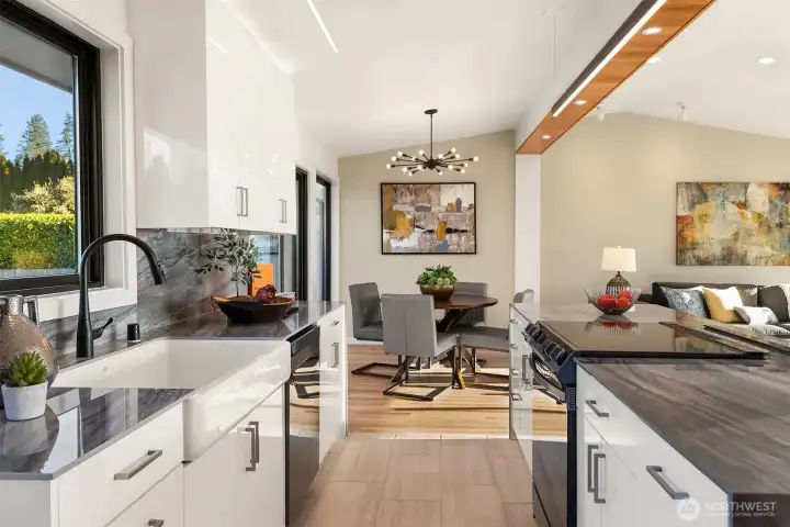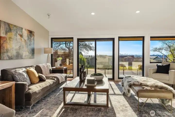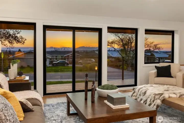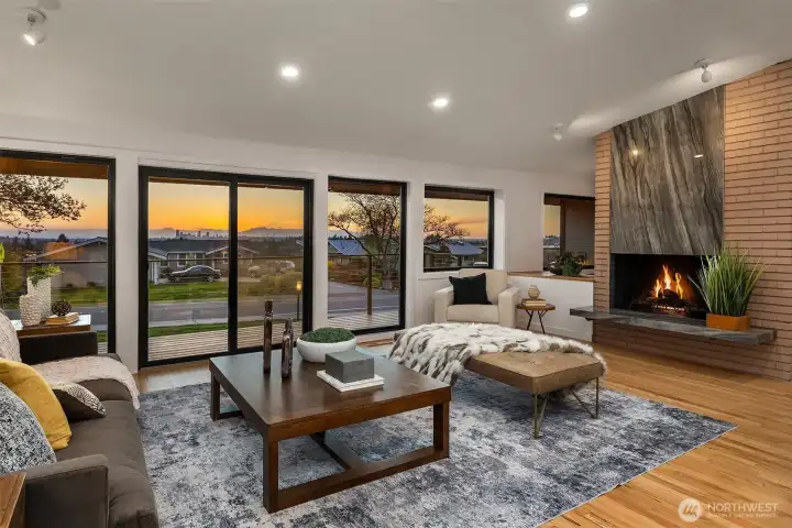 Perched at the top of Woodridge Hill, this fully renovated west-facing home offers sweeping panoramic views of Downtown Bellevue and the Seattle skyline. Rare for the neighborhood, the home blends timeless Woodridge appeal with a bright, open kitchen and great room concept designed for modern living, effortless entertaining, and everyday connection. Large windows draw in natural light and frame the views, creating a living experience that feels both elevated and inviting. With 4 bedrooms, 2.75 baths, and versatile lower-level flex space ideal for guests, a bonus room, home office, or private retreat, the layout offers exceptional flexibility. The expansive backyard backs directly to a school park, adding privacy, openness, and remarkable room to play, gather, and enjoy the outdoors. Just steps to Woodridge Elementary and close to neighborhood pools, Norwood Park, and trails, this is a rare turnkey opportunity in one of Bellevue’s most sought-after neighborhoods with the space, updates, and setting buyers are looking for.