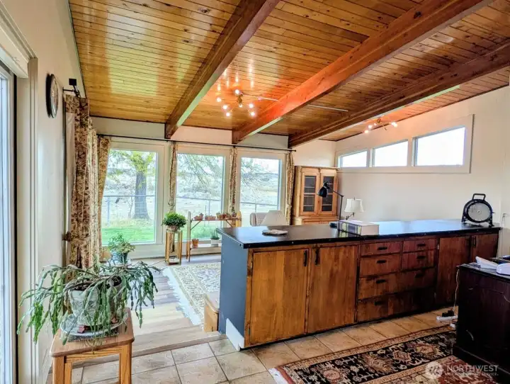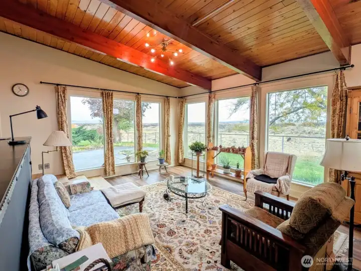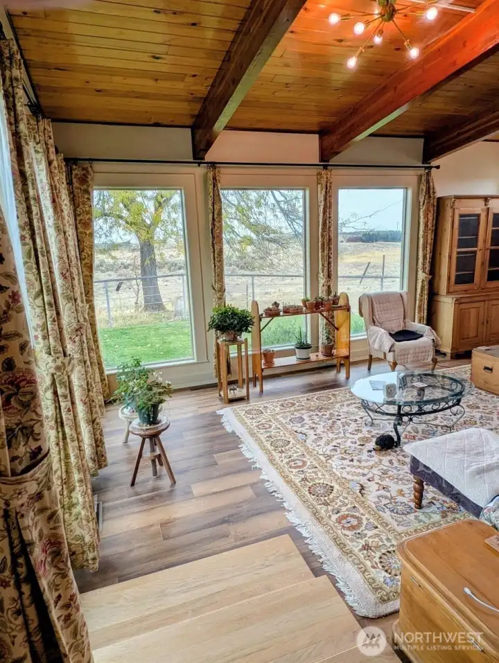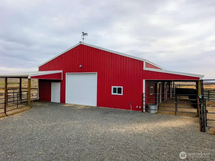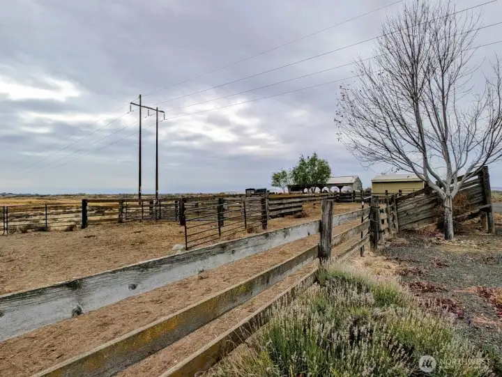 Beautifully designed Country Home showcasing sweeping territorial views of the Saddle Mountain Range and even Mt. Rainier on clear days. Enjoy Sunny Eastern Washington living with natural light filling the main living area. Gorgeous wood beams and tongue-and-groove ceilings create a warm, rustic charm. The spacious kitchen features a granite island with sink, quality cabinetry, and a large pantry- perfect for the home chef. Little touches in the home shine with pride of ownership! A true horse lover's dream, the property is fully animal-ready with secure pipe-and-cable fencing, cross-fenced paddocks, and corrals. The 40x54 barn includes five stalls with paddocks, concrete hay storage, roll-up-door, power, lighting, and 4' man-door, plus a 12' three-quarter-sided lean-to for extra covered workspace. Additional features include a generator hookup for backup power (no generator), small powered workshop, and a chicken coop with run. Conveniently located close to town and Potholes Reservoir.