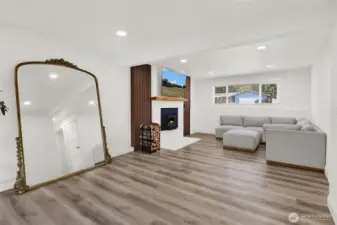 Stunning fully remodeled 4-bedroom, 2-bath residence set on a rare, expansive lot backing to a tranquil greenbelt and creek, ideally located between Bellingham and Ferndale. This exceptional home offers refined living with designer-quality finishes throughout, including new cabinets, along with a new roof, flooring, interior paint & more. Designed with versatility in mind, the layout provides excellent potential for multi-generational living. The lower level features an inviting secondary living space with a wood-burning stove and direct access to the private backyard oasis. Enjoy peaceful surroundings in a quiet neighborhood with no HOA dues, while still being conveniently close to town. A truly special property offering space, privacy, and modern comfort. Property includes approved space for a future ADU or garage, adding incredible value and versatility. An exceptional opportunity to own a private retreat with room to grow.