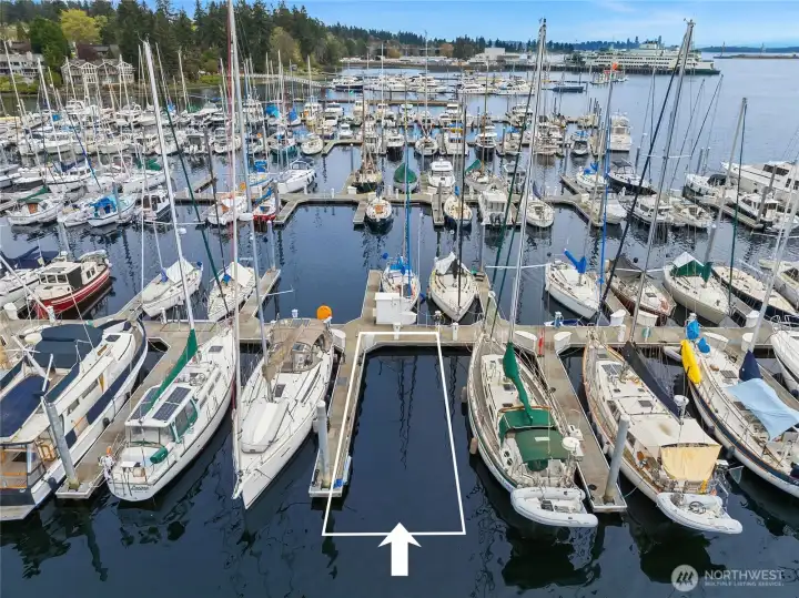 Coveted D Dock location for easier water access. 40.5' x 15.5' slip. It even has its own attached bumper! Conveniently located Winslow Wharf Marina offers a wonderful maritime lifestyle for private recreational use or as a solid investment opportunity. Located in the heart of Bainbridge's downtown-Winslow- near shops, restaurants, the ferry, a park and so much more! Includes numerous amenities: bathrooms with showers, laundry facilities, WiFi, 30 & 50 amp hookups, on-site management and even a chandlery! Welcome to the Bainbridge boating community!