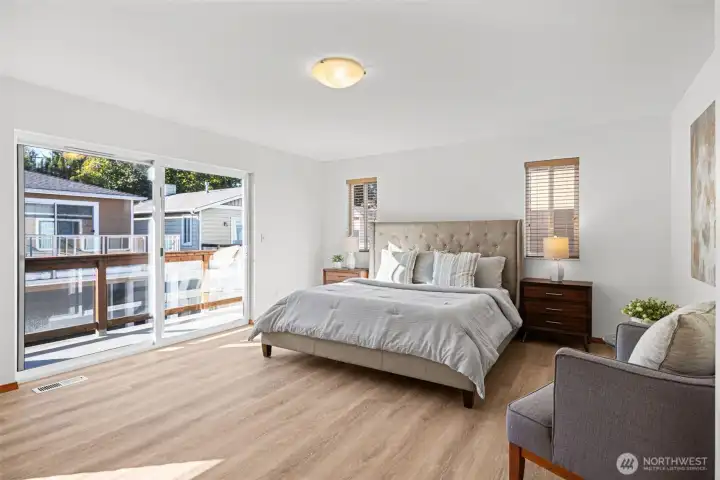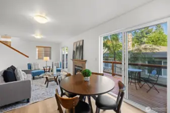 Welcome to Viking Heights! Thoughtfully designed living spaces in a spacious 2 story w/finished basement. Open concept living area. A stylish functional kitchen white appliances, new dishwasher, & observation window. Entertaining deck off back of home to extend gatherings outdoors. Upper level includes an expansive primary suite w/balcony, full bath en suite & walk in closet. 2 addl bedrooms share a full bath. 1/2 bath located on each of the main & lower levels. New flooring on 2 levels & freshly touched interior paint. Lower level is perfect for a home office, gym, media room or 4th bed. 2 sliding doors out to a patio. 3 covered pkg spaces-carport & attached garage. Low-maintenance landscape. Close to parks, shopping, & commuter routes! Close proximity to Aurora and Shoreline park & rides with direct commute connection to downtown. This is it!