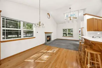 Welcome to your peaceful retreat in this sought-after community of Clearwood - where nature, comfort and lifestyle come together beautifully. This well-maintained home welcomes you with a charming covered front porch. Inside, cathedral ceilings create a bright and open atmosphere, while the inviting living room features a cozy gas fireplace. All 3 bedrooms are located on the main floor, including a spacious Primary suite with a walk-in closet and a stress buster jetted tub. The open-concept kitchen is designed for both function and style, showcasing beautiful oak hardwood floors, a convenient breakfast bar, lots of counter space, and a walk-in pantry for ample storage. The kitchen flows seamlessly into the dining area and living room, making it perfect for everyday living and entertaining. Upstairs, you'll find a versatile loft with newly installed carpet. This bonus room has its own 3/4 bathroom and a closet which could easily function as a 4th bedroom or office. (Note: septic system is rated for a 3-bedroom home). The generous yard provides plenty of space for RV parking. This property has access to 3 private lakes, scenic walking trails and abundant outdoor recreation facilities. Whether you're enjoying peaceful mornings by the water or exploring the wooded surroundings, this home offers a lifestyle that feels like a year-round getaway. Experience the charm, flexibility and tranquility this special property has to offer.