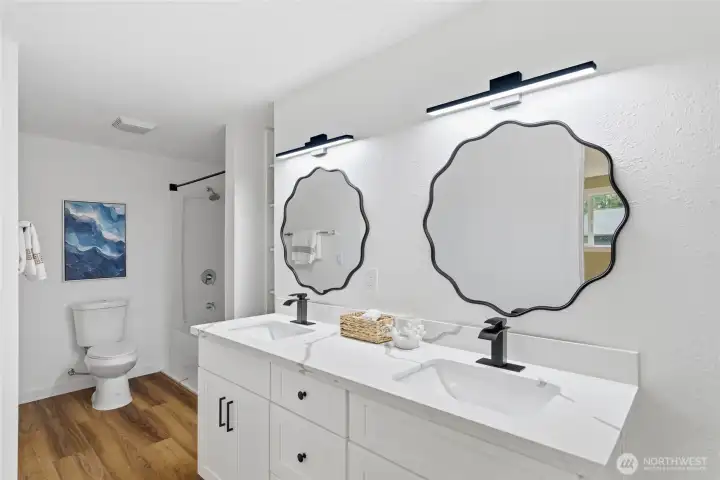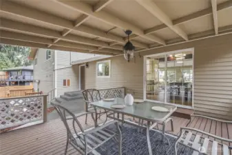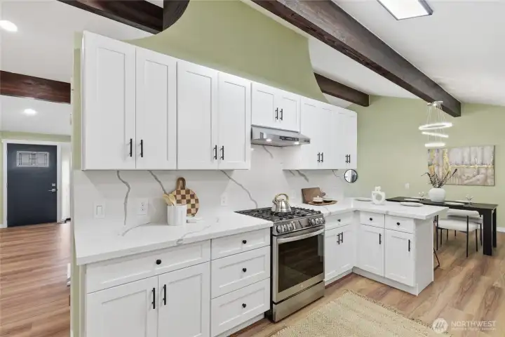 This thoughtfully updated home with timeless comfort conveniently nestled in the heart of highly sought-after Renton Highlands. The main floor features a light & bright living room with a cozy fireplace, a fully equipped gourmet kitchen with quartz countertops, sleek cabinets and SS appliances, charming formal dining room w/ slider opens to a huge covered entertaining deck. Upstairs has 3 decent size bedrooms and an oversized laundry room with a brand-new washer & dryer. Downstairs boasts an additional bedroom w/ slider open to a private back deck, it also has a gigantic family room, it's a great spot for home movie theater, karaoke, yoga, gym or whatever your heart desire. Dual gas water heaters to enhance efficiency. 3 car garage, long and deep driveway which could parked addition 6 cars and plus one designated RV parking spot. Fully fenced peaceful back yard, walking distance to school, park, trails and super easy access to freeways and shopping centers. Ideal location along with functional floor plan with ample rooms & storages, better than new and Move-in ready! Welcome Home!